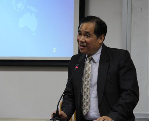 晚上7:15分,讲座开始。詹成在介绍了他的个人经历之后,陈峰风趣幽默地开始了他的演讲。他首先从自我经历讲起,谈到了自己与广州和广外的联系,陈峰回忆了自己当年高考与上大学的不易以及后来进入联合国的一些经历。随后,陈峰以提问的方式开始介绍联合国成立的背景与同传的起源,现场的同学积极踊跃地回答,陈峰说道,很高兴看到翻译学院的同学有着比较广博的知识面,对学习翻译来说是非常重要的。随后,他现场为同学们播放了一段关于联合国译员的纪录片,介绍了翻译的历史以及同传的重要性,并说明要成为一个好的翻译,除了有好的语言功底,还要积累各种知识。