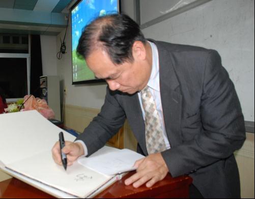 早在讲座之前,仲伟合校长在办公室亲切接见了陈峰教授。仲伟合对陈峰提供的语料表达了感谢,表示希望能与联合国开展更多实质性的合作,给老师和学生提供更多的机会。对于陈峰所介绍的联合国译员高龄化现象,仲伟合也表示鼓励我校优秀教师报考联合国译员,参与联合国工作。会谈结束之后,仲伟合校长为陈峰博士颁予了客座教授证书,聘请其为我校客座教授。