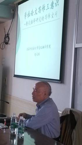 11月21日下午,谢天振教授讲学系列讲座举行第三场,谢天振以“学位论文写作三意识——兼谈翻译研究的写作空间”为题与我院博士生和硕士研究生做了学位论文方面的指导。