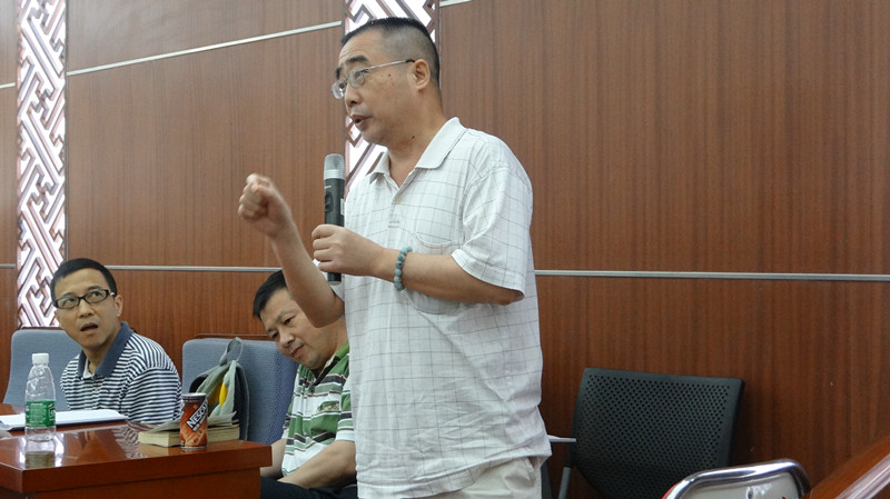 作为本次活动主要发起人之一的褚东伟首先朗诵精心挑选的译作片段,受到听众阵阵掌声,外籍作家、诗人FraserSutherland赞其行文流畅,也中肯地给出细微修改建议,褚东伟称,FraserSutherland作为单语背景的英语母语人士,对译作给出的意见相当真切而有价值,并强调译作采用单语背景审校的重要性。之后,李明副院长朗诵译作《推测几种》片段,由我院加拿大籍留学生温仕豪作点评,师生互换点评角色、其乐融融交流探讨的景象,是我院译学精神最真实的写照。欧阳利锋与外籍评委Stephen Rake别出心裁,先评后诵,高度赞扬了《爱情研究》作者李银河的研究成果及开拓精神,以及她对中国社会学的贡献,而作为译者,是想通过该类文学的翻译,向世界展示中国正在觉醒的“性学”意识。这也正是中译外的宏观意义的体现。余东教授的《保卫老师》英译片段朗诵结束后,我校英教学院教师薛媛对文中一个动物身体部位的细节提出了疑问,该疑问引起了所有人的积极讨论,大家一致认为,翻译所需要关注的,不仅仅是词典里所注释的意思,还需要结合生活实际。这充分体现了丰富的经历及探究的精神对于译者的重要性。随后,英文学院教师许勉君朗诵译作片段,褚东伟评价称,许老师的参与对于本次活动意义非凡,这意味着,我院这样的活动并不仅限于院内,也欢迎全校有优秀作品的老师、同学共同参与,这也是将来“岭南译言堂”的发展方向。最后,作为本次译作中唯一一位英语母语的译者,牟传门朗诵译作《胡文青传》片段,其对中国历史和文化的深刻了解,在译作中充分体现出来,受到众人一致好评。