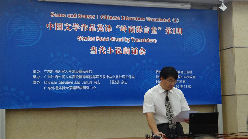 本网讯6月21日上午,我院成功举办中国文学作品英译“岭南译言堂”第1期——当代小说朗诵会(Sense and Senses: Chinese Literature Translated(1)—Story Reading)。本次活动为弘扬中国文学与文化、充分发挥高翻学院的笔译优势、带动我校师生从事中国文学英译的热情,由我院笔译系牵头,中华文化外译工作室承办,联合ChineseLiterature and Culture杂志、《花城》杂志及广东外语外贸大学翻译学研究中心共同协作,邀请我院口笔译教师及研究生、外籍专家、兄弟院校师生共聚一堂,聆听中国当代文学英译作品译者朗诵译作,并由外籍专家点评分享。