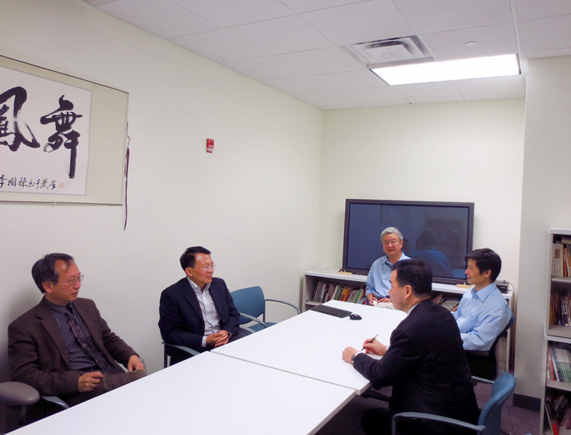 我校代表与傅鹏辉处长和笔译中文处马雪松处长合影