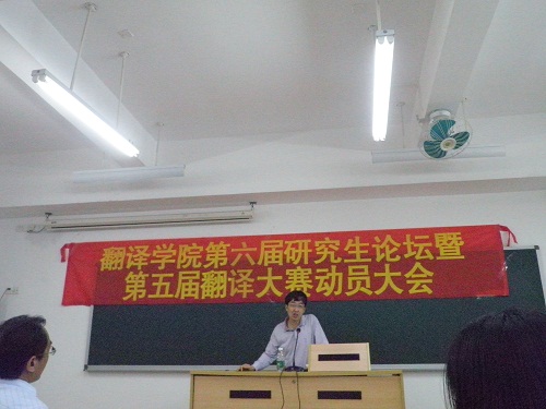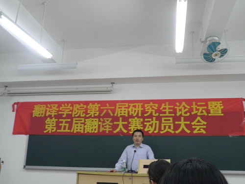 李明教授在指导学术论坛讲话中指出,翻译实践和翻译理论是相辅相成的,实践需要理论支撑,理论需要实践检验,两者缺一不可。他鼓励学院研究生积极参与研究生论坛,把翻译中的体会和感想整理成文。他还详细介绍了韩素音翻译大赛选拔赛的具体要求和开展研究生论坛活动的相关事宜,并着重说明了研究生论坛的论文选题范围、要求以及论文格式的注意事项。