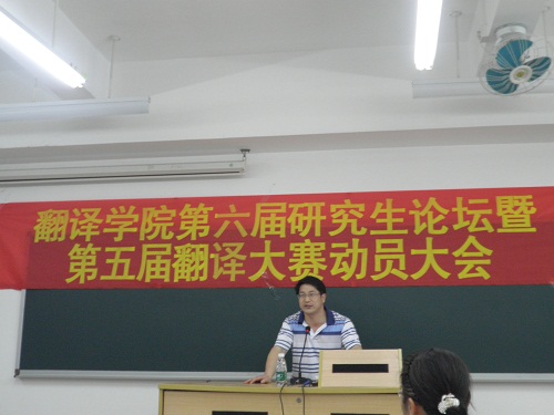 最后,09MA徐娟娟同学代表上一届翻译比赛获奖选手做了发言,结合自身擅长的汉译英翻译就如何培养翻译兴趣、提高笔译技能与同学们进行了交流。