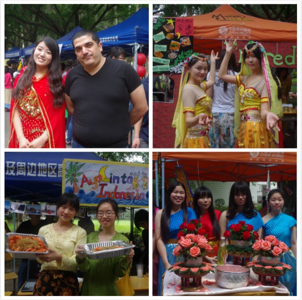 印尼、印度、缅甸、越南、泰国等东南亚主题摊位也同样吸人眼球:印尼语系的摊位上到处悬挂着精美的明信片,展示着印尼独特的民俗风情和旅游名胜,尤其是巴厘岛的图文简介,让客人们直呼身临其境;印度摊位的咖喱饭和鱼蛋风味十足,而由一群身着华美舞衣的女孩们带来的印度舞,更是引来人群阵阵欢呼;缅甸以其清淡的菜肴独树一帜,越南的春卷和泰国的传统服饰也让人印象深刻。