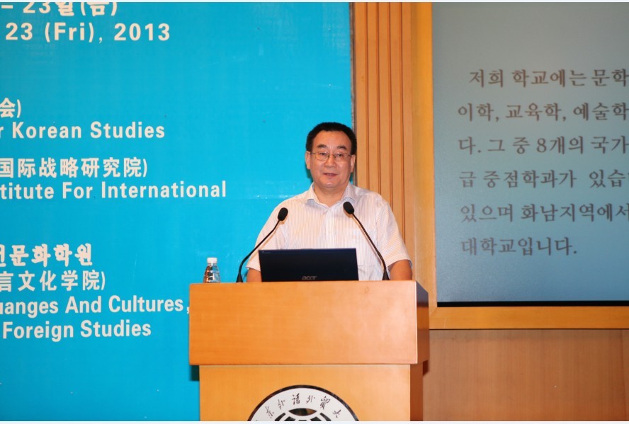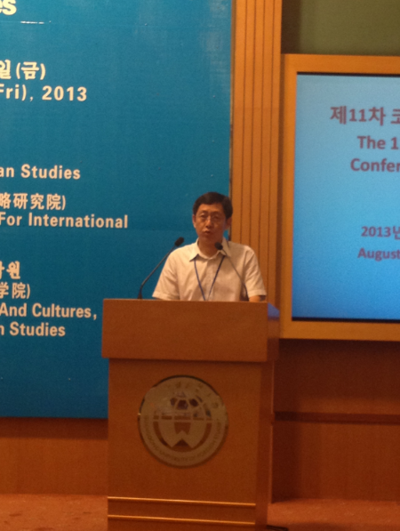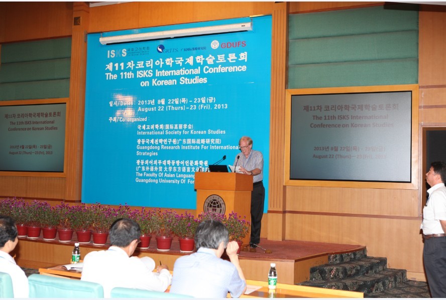 本网讯 2013年8月22日上午,第11届高丽学国际学术研讨会在广东外语外贸大学北校区行政楼国际会议厅隆重召开,广东外语外贸大学副校长顾也力教授,广东战略研究院副秘书长刘继森教授,广东外语外贸大学东方语言文化学院院长陈多友教授、广东外语外贸大学东方语言文化学院副院长全永根教授、国际高丽学会会长Don Baker、国际高丽学会历届会长以及来自韩国、朝鲜、中国、英国、日本等十多个国家的130多名专家学者与会。本次会议为期两天。