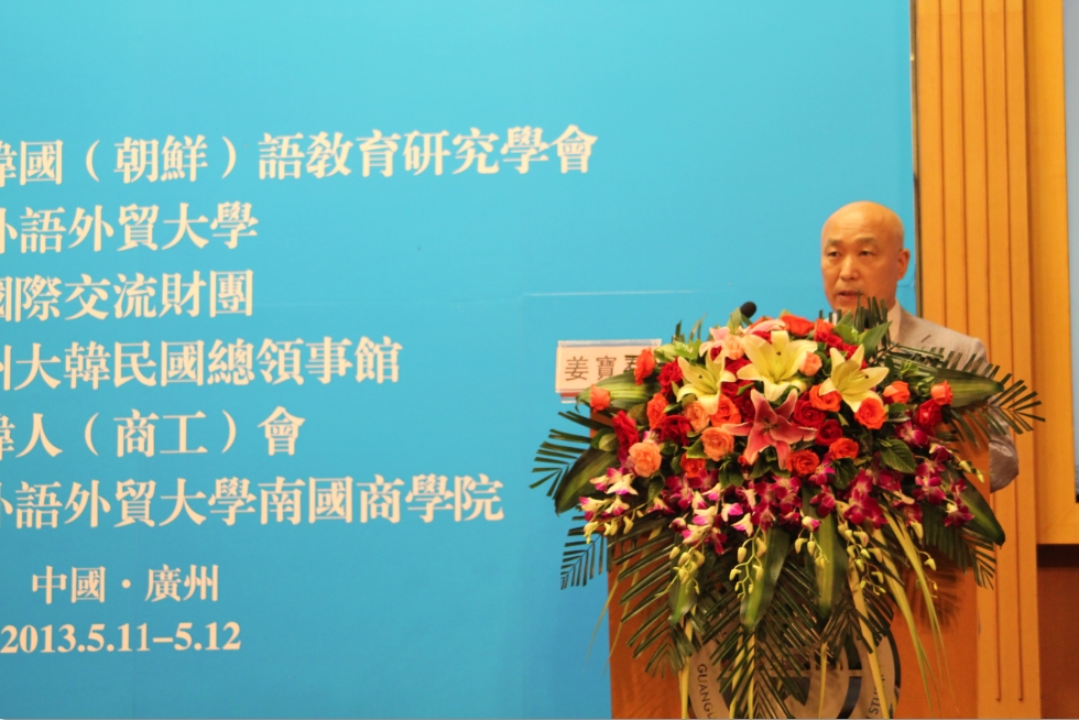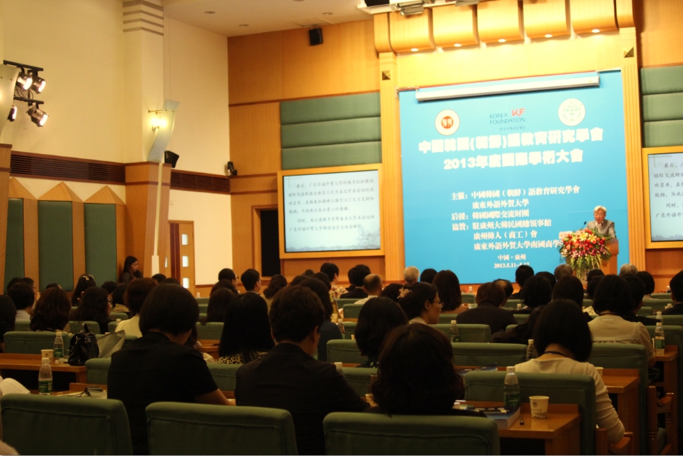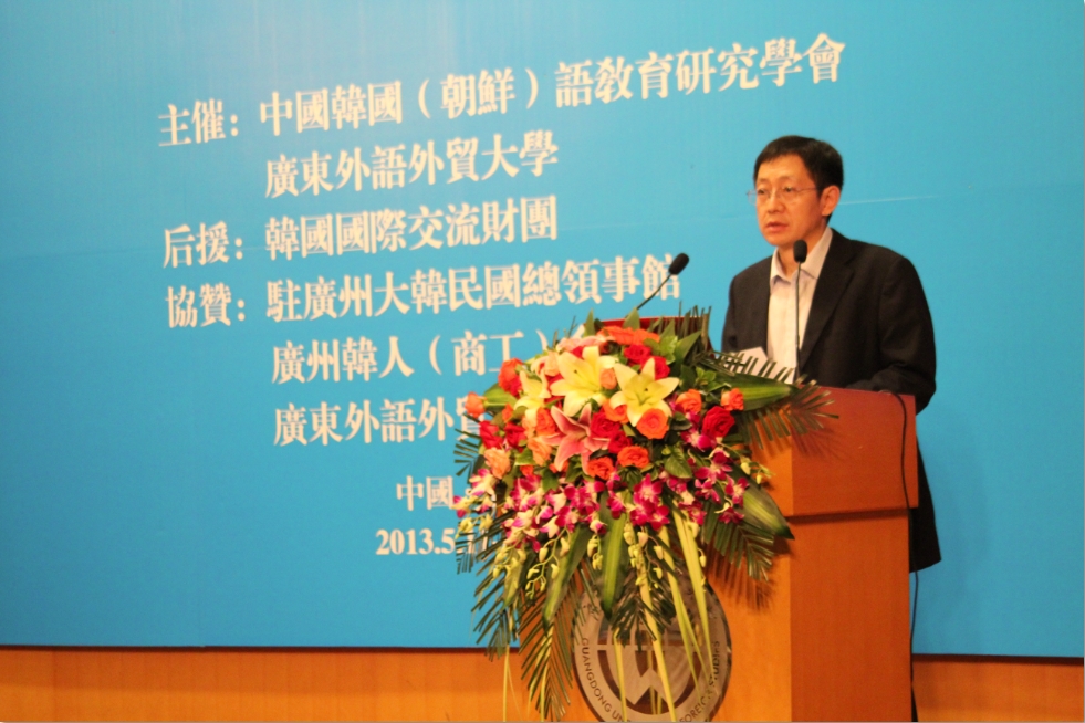 广东外语外贸大学校长仲伟合教授、东语学院党委书记敖湘晖、副院长全永根教授以及韩国语系全体教师出席了本次大会。此外,中国韩国(朝鲜)语教育研究学会会长姜银国教授、国际交流财团全南镇理事、韩国驻广州总领事馆杨昌洙总领事以及来自中韩两国兄弟院校的100多名专家学者也参加了本次大会。