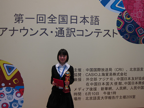 本网讯6月10日,作为中日建交40周年交流活动之一,由中国国际广播电台、北京语言大学共同主办的第一届全国日语播音口译大赛在北京如期举行。我校东语学院日语系选派的选手云青同学顺利闯入决赛,最终取得了全国三等奖的好成绩。