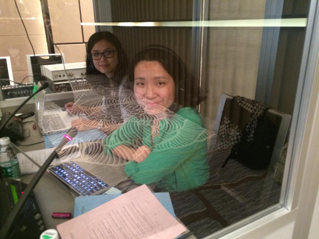 欧阳倩华与王丹老师在同传间工作