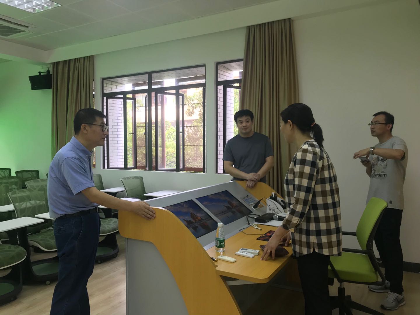 2018年10月19日上午,东北师范大学英语史研究中心主任、外国语学院博导、外语实验教学中心主任周桂君教授、副主任宋金刚和主任助理谢东宇一行来我校教育技术中心、实验教学中心暨国家级同声传译实验教学中心进行考察调研。北校区语言实验室主任祝黎、国家级同声传译实验教学中心主任助理莫娟老师热情地接待了来自远方院校的老师们。