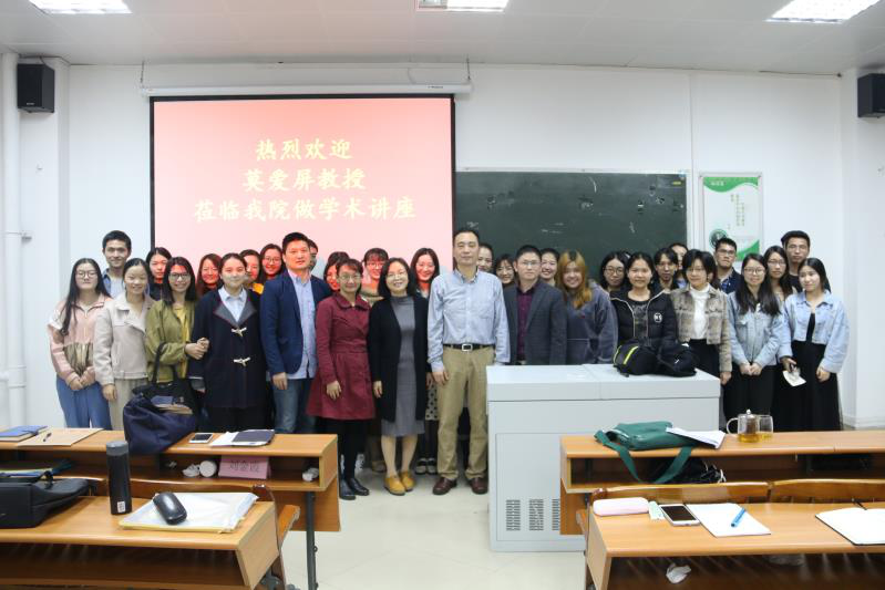 本网讯 3月14日下午,我校国家级同声传译实验教学中心主任、博士生导师莫爱屏教授为华南农业大学外国语学院研究生举办了题为《MTI翻译实践报告写作》的讲座。讲座由陈旸副院长主持,华农全体翻译硕士研究生、部分硕士生导师及任课老师参加了讲座。